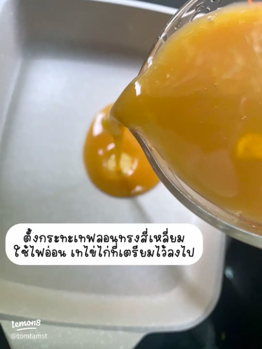 3. ทอดแผ่นไข่: ตั้งกระทะเทฟลอน ทาน้ำมันพืชเล็กน้อย ใช้ไฟกลาง เทไข่ลงทอดเป็นแผ่นบาง ๆ